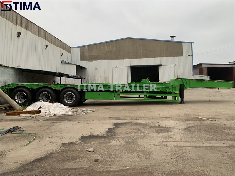 The 12 wheel low bed trailer can loading 60 tons different cargoes, total length is 13 meters, width is 3 meters. Suitable for excavator, bulldozer etc construction machinery haulage. In addition, the dimension also can produce according to your request.